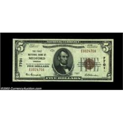 Medford, OR - $5 1929 Ty. 1 The First NB Ch. # 7701A nice note from the front, but wet at one time,