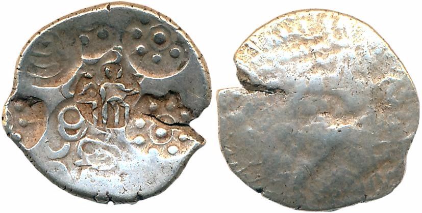 Kakatiyas of Warangal, Punch Marked, Gold Gadyan, 3.56g, Uniface, "Raya Gajakesari", Nine punches - 1 x Boar in centre, 2 x Kannada letter "Sri", 4 x "Lotus" flower symbol, 1 x Kannada legend "Raya Gaja" and 1 Kannada legend x Kesari. Very fine, rare.