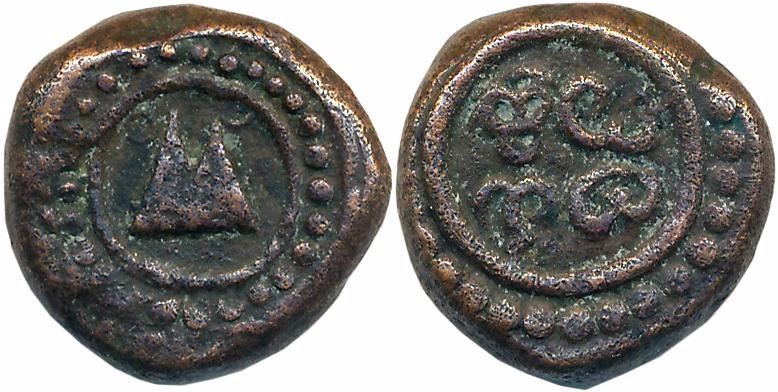 Thiruvanmalai, Copper Cash, 6.41g, Obv: Twin Peaked hill, Rev: Tamil legend "Arunadri". Very fine, rare.