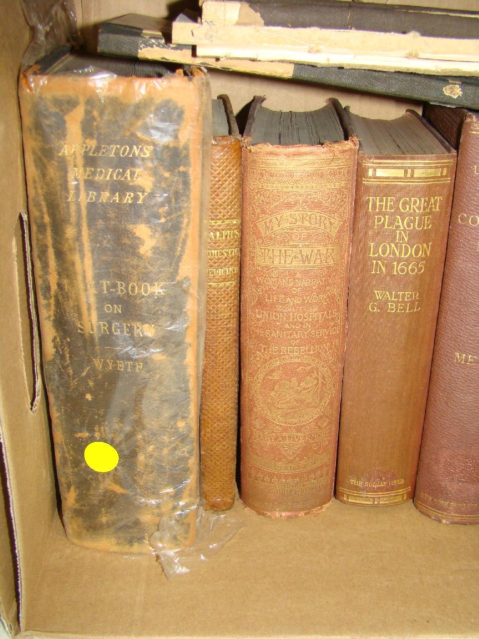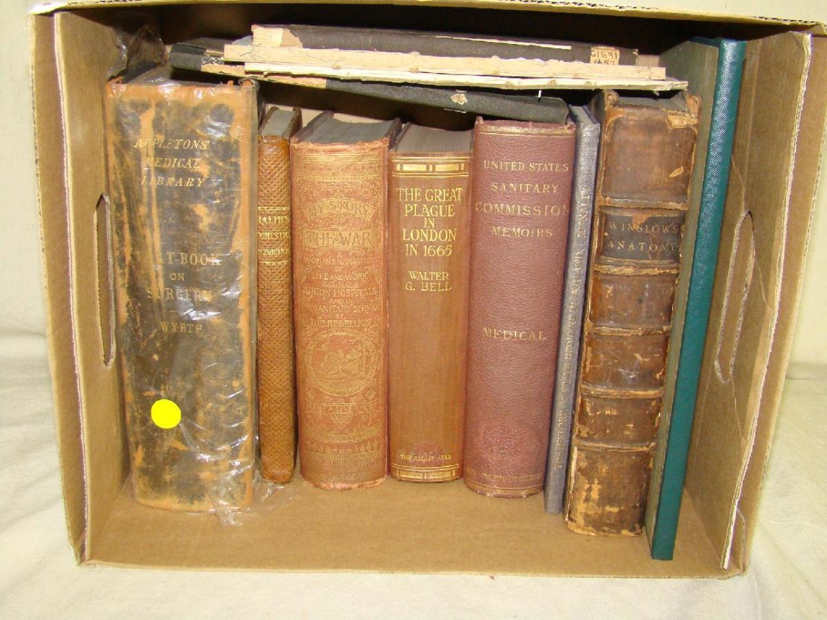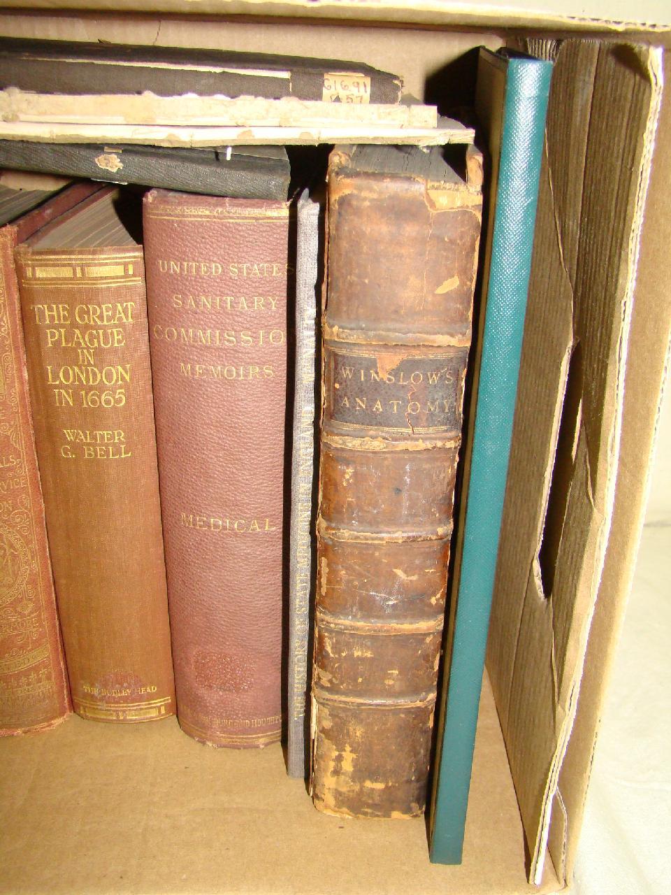 Approx. 12 volumes. Includes Bell. The Great Plague in London in 1665, Winslow Anatomy, Ralph's Domestic Medicine. etc. Nice Lot.