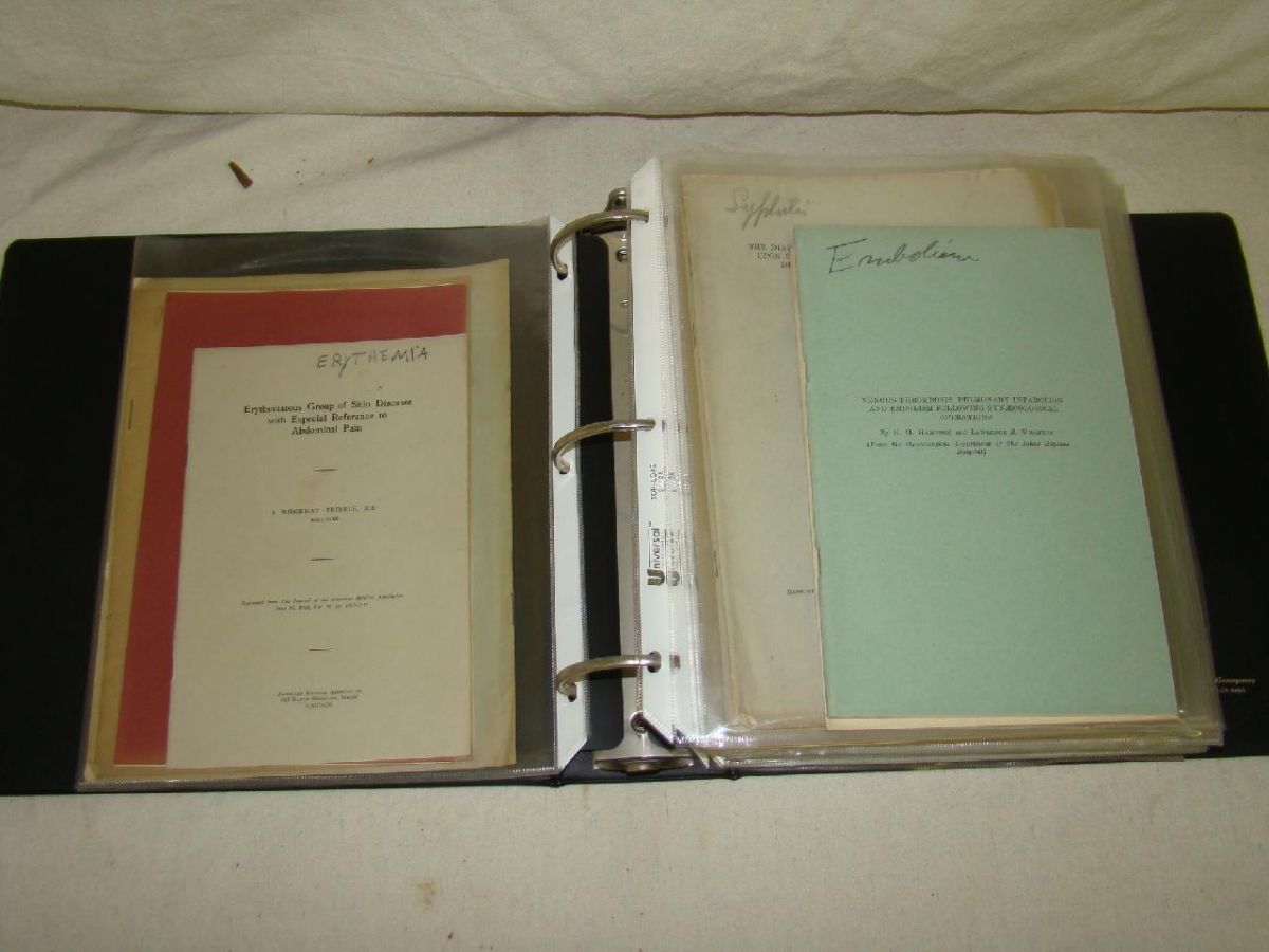 2 binders loaded with circa 1920's-40's medical  treatises on a variety of subjects. Examine.