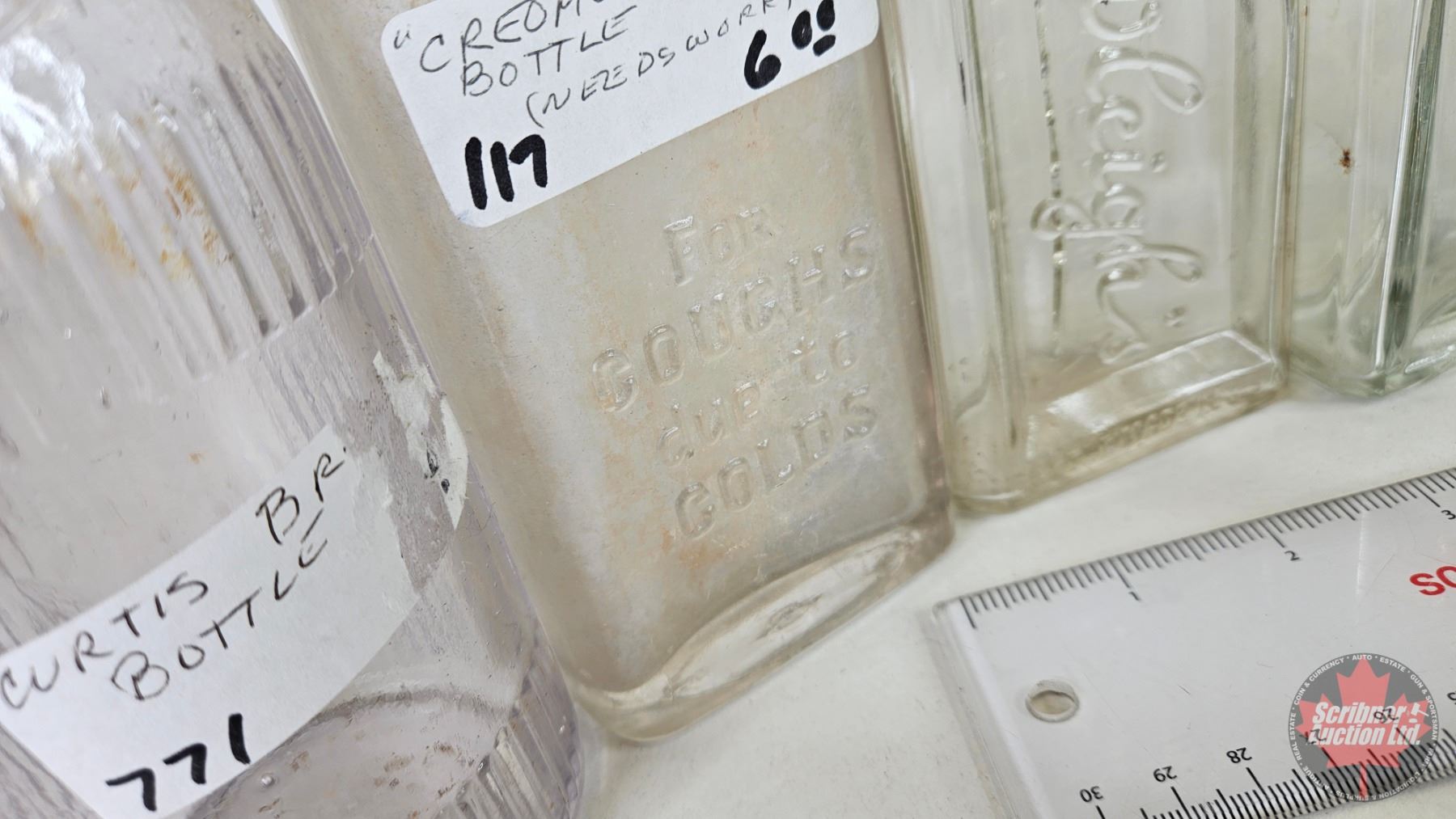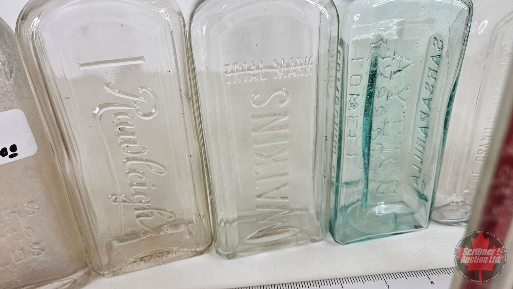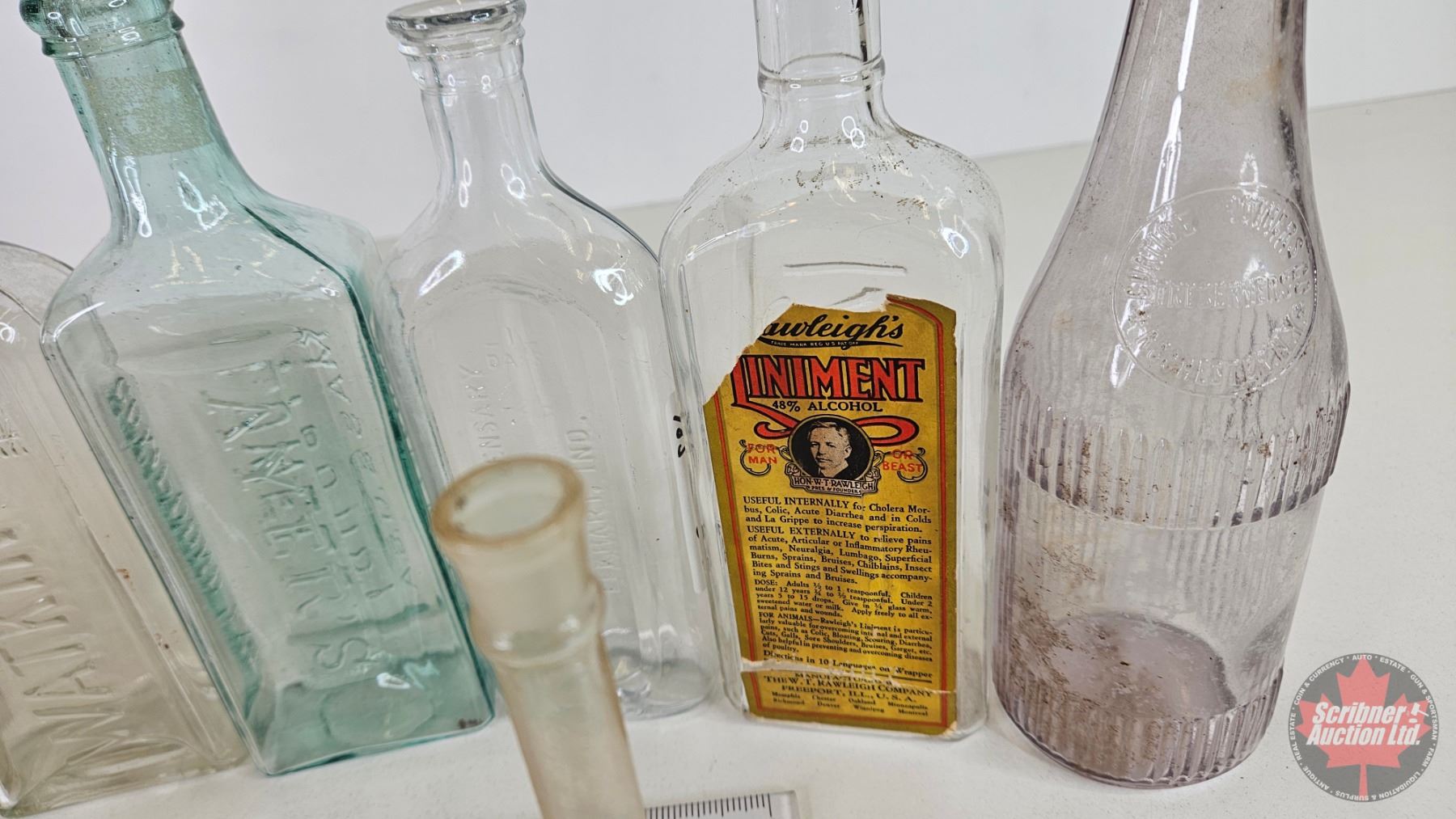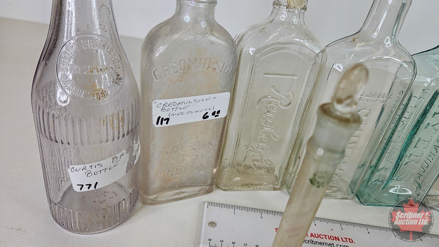 Medicine Bottles (8) w/ Graduated Cylinder & Volumetric Flask