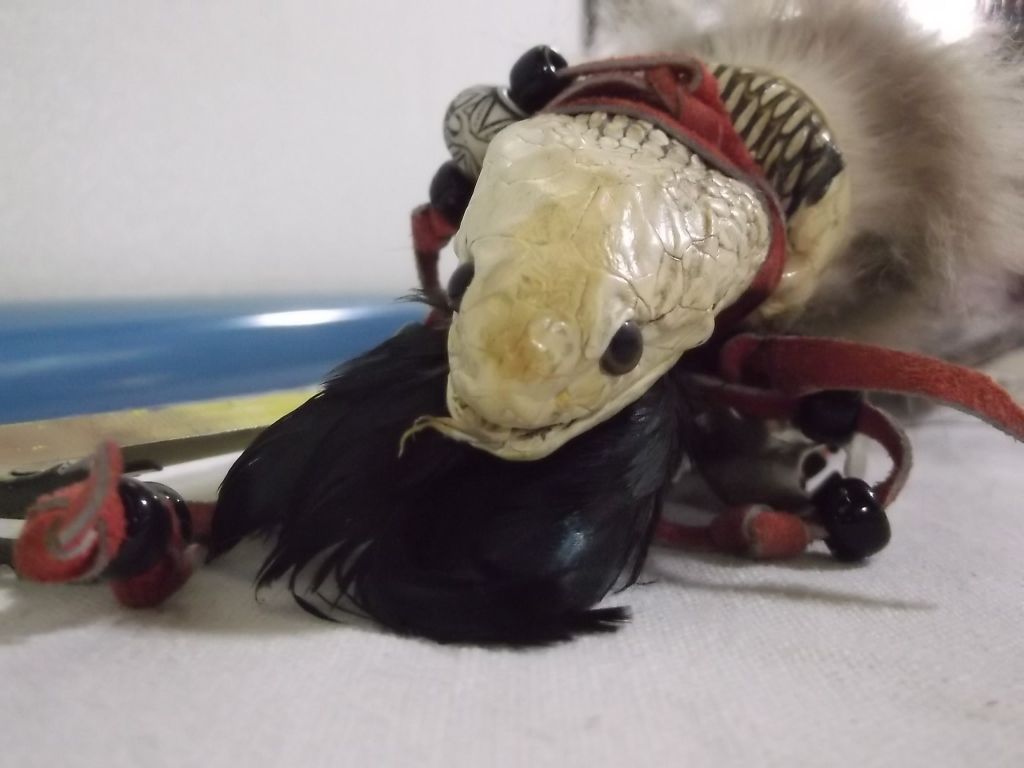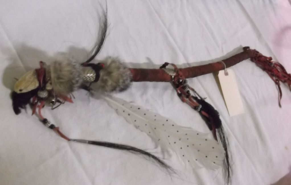 Medicine Man Rattle Stick with real Rattle snake head approx. 26" not including the fringe