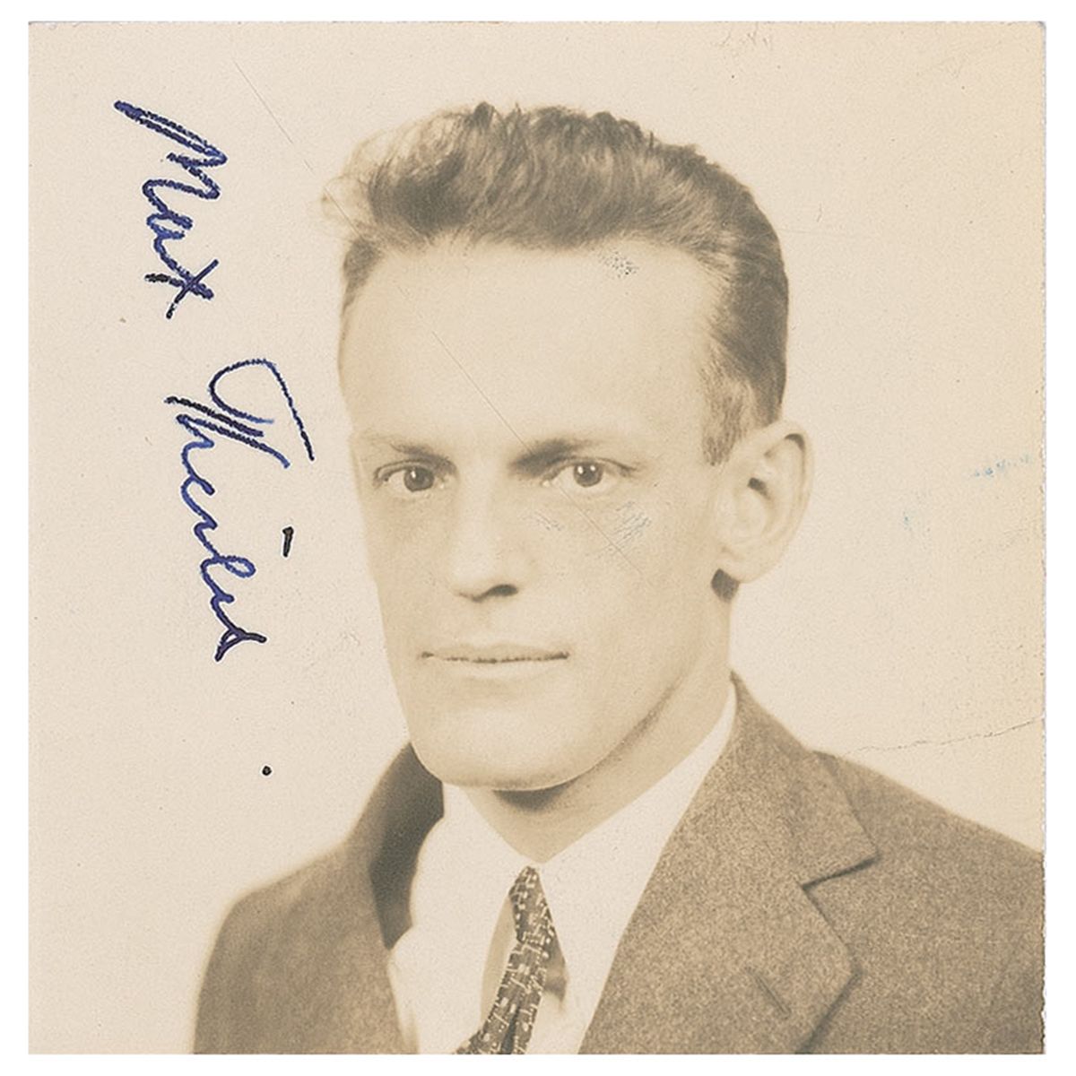 Three items: DS, signed “Valentine Mott,” one page, both sides, 15.25 x 7, stamp-dated February 7, 1884. A stock certificate for 100 shares in the Oregon and Transcontinental Company, issued to Mott and signed on the reverse; vintage matte-finish photo of Max Theiler, trimmed to a size of 3 x 3, signed vertically in fountain pen; and 1953 TLS, signed “M. Theiler,” one page, dated November 4, 1953. In very good overall condition.