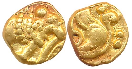 Gangas of Talakadu, Gold Gajapati Fanam, 0.37g, Obv: An ornate Elephant standing to right, Rev: Scroll work. Extremely fine.