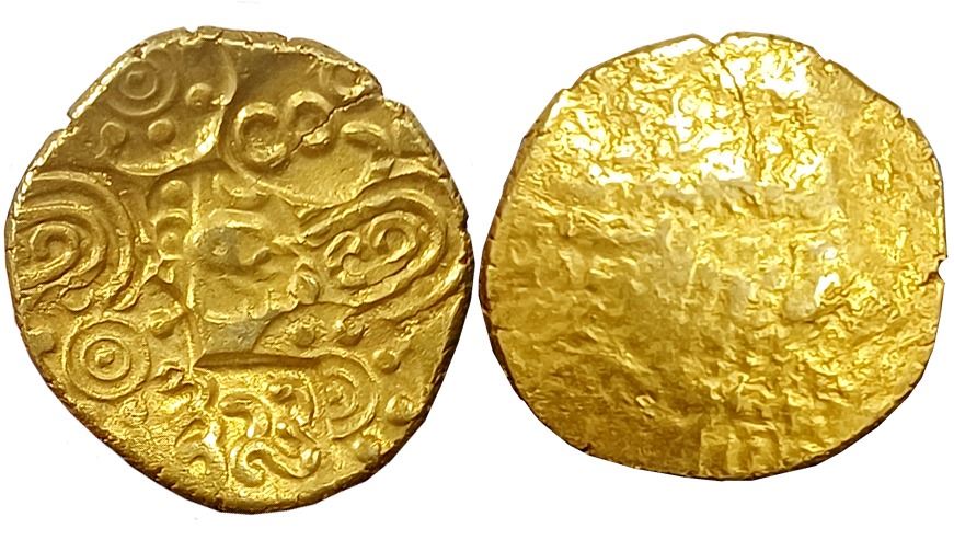 Kakatiyas of Warangal, Punch Marked, Gold Gadyana, 3.75g, Uniface, “Raya Gajakesari”, Nine punches - 1 x Boar in centre, 2 x Kannada letter "Sri", 4 x "Lotus" flower symbol, 1 x Kannada legend "Raya Gaja" and 1 Kannada legend x Kesari. Extremely fine, very rare.