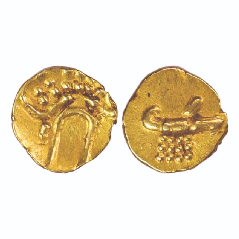 Coorg, Veera Raya, Gold Fanam, 0.36gms. Obv: Stylized lion. Rev: Crocodile. Very Fine, Scarce.Very Fine+.