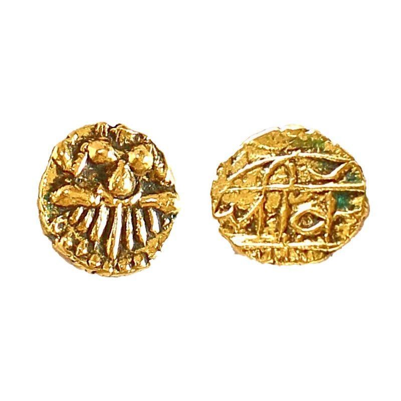 Vijayanagar ? Gold 1/2 Fanam, 0.18gms, obv Godess Lakshmi seated facing front . Rev Devnagari legend . Extremely fine , extremely rare.