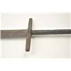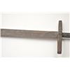 Medieval Relic Broadsword in 15th century style. The sword is 43” in overall length with a 34” blade measuring 1 ½” across at the widest part of the blade with a long triangular early type point. It is 6 ½”across the blunt ended thick guard. It is 9” from the guard to the end of the pommel which shows similar aging. We and two other experts have found no sign of chemical or artificial aging or modern fakery. We willoffer the buyer a 30 day right of return privilege on this lot as we believe in it, as does our consignor. Simply return with 30 days if not satisfied with the originality and purchase price will be refunded. Theweight is 4.3 pounds and the blade is forged correctly. Est.: $2,500-$5,000+++.