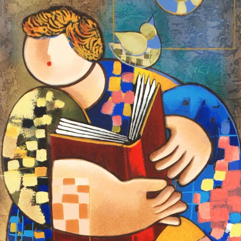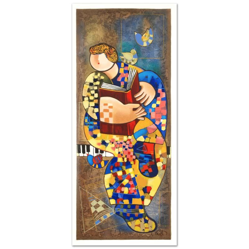 "Meditating" is a limited edition serigraph on paper numbered and hand signed by Dorit Levi. Measures approx. 13.5" x 31" (with border), 12" x 29.5" (image).