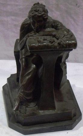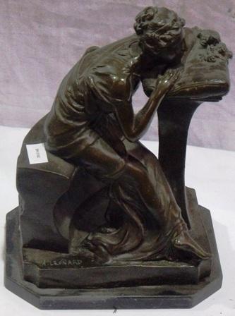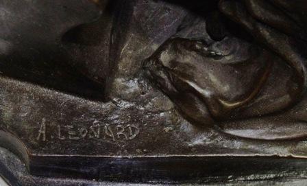 Signed Bronze sculpture by A Leonard with a marble base 11.5" H, 7" W, 8.5" D