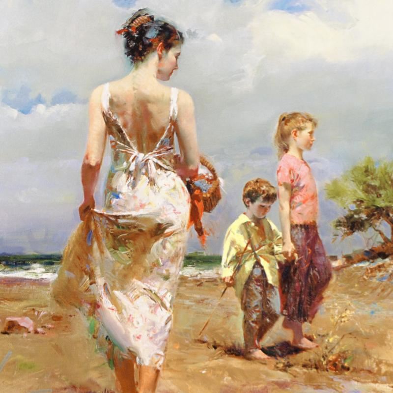 "Mediterranean Breeze" is a limited edition giclee on canvas, numbered and hand signed by Pino (1939-2010)! Includes Certificate of Authenticity! Measures approx. 12" x 12" (image).