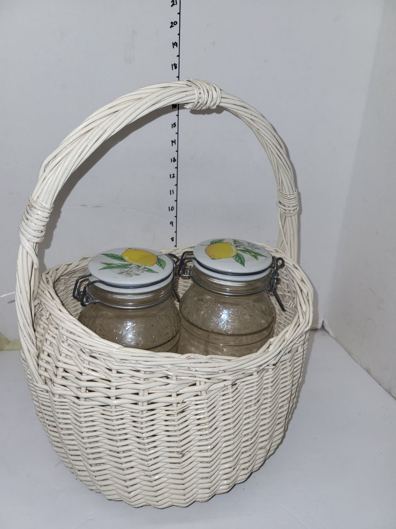 Medium-Large Wicker Basket with 2 Lemon Lidded 2L Jars Made in Italy