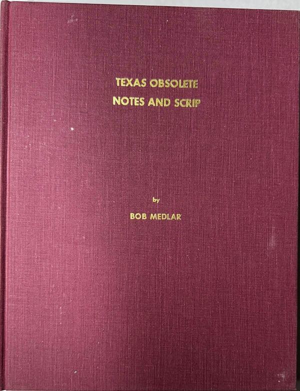 Medlar, Bob, Texas Obsolete Notes and Scrip, published 1968 hard bound 204 pages with black and white illustrations