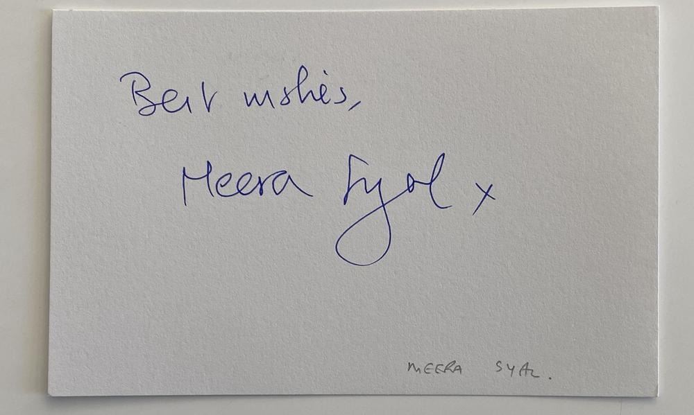 Meera Syal original signature. 5x3 inches