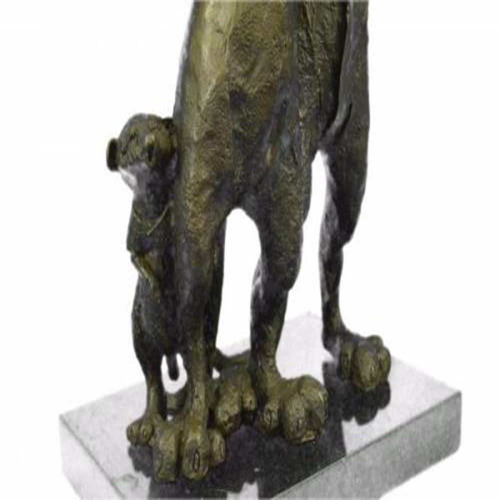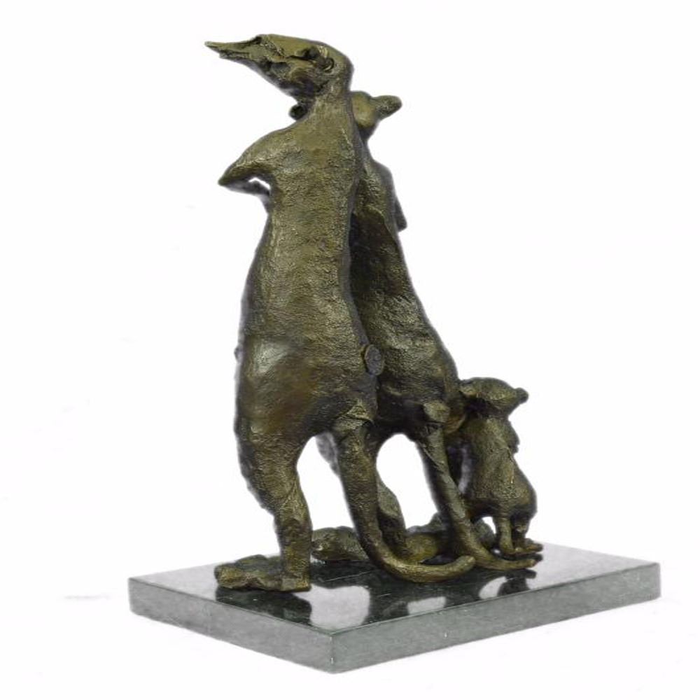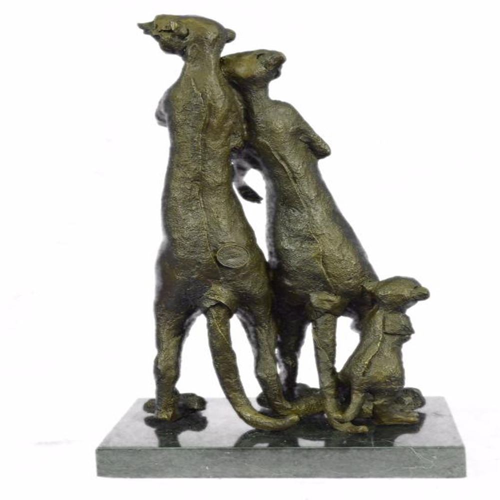 Well modeled genuine hot cast large Bronze Sculpture depicting a Meerkatfamily with a baby Meerkat holding her mom leg. The Sculpture was cast using the early method of lost wax casting and stained with a brown patina finish for preservation. It is mounted upon a marble base. Bronze Dimensions with Marble Base: Height 16 X Width 8 inches. Weight: 18 LBS.
