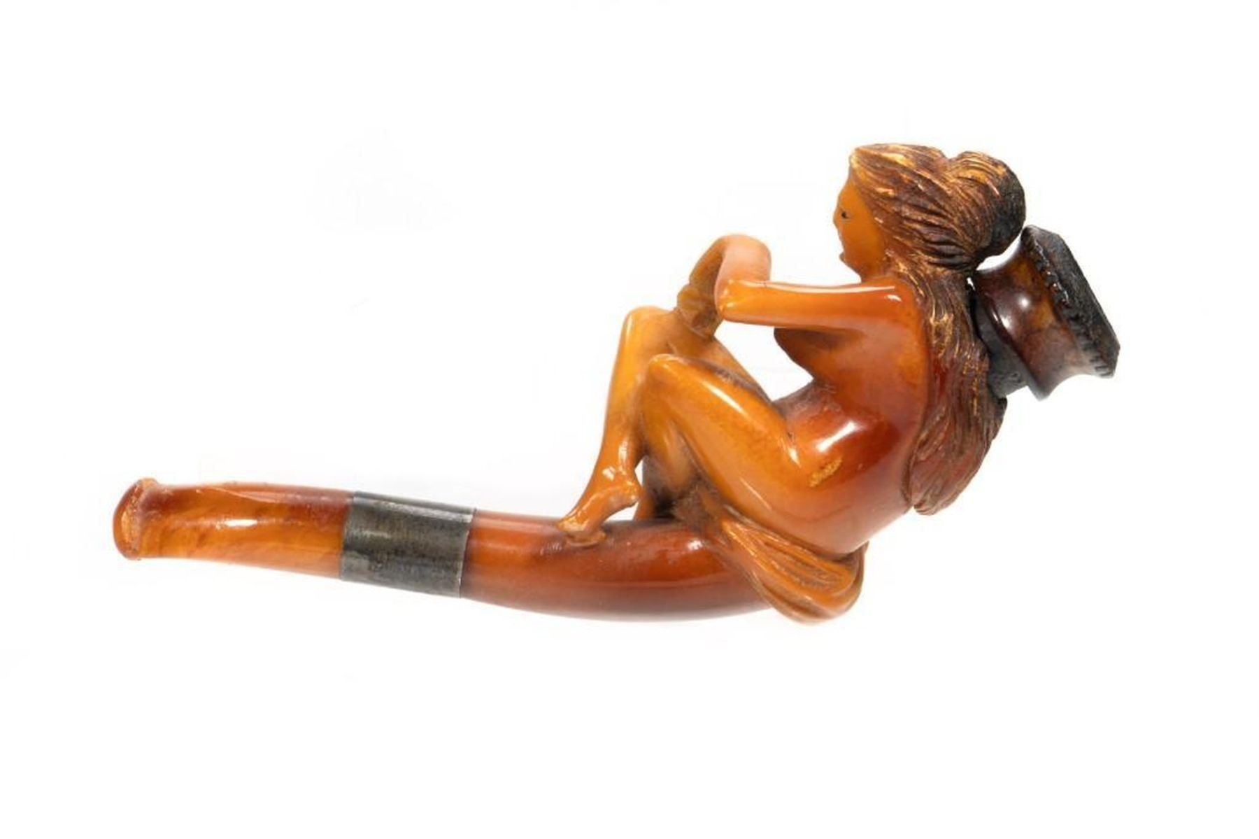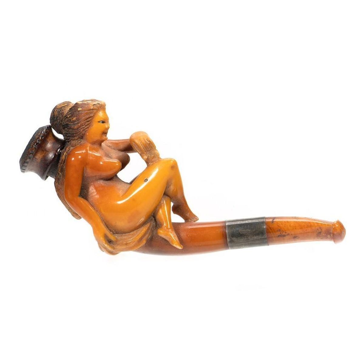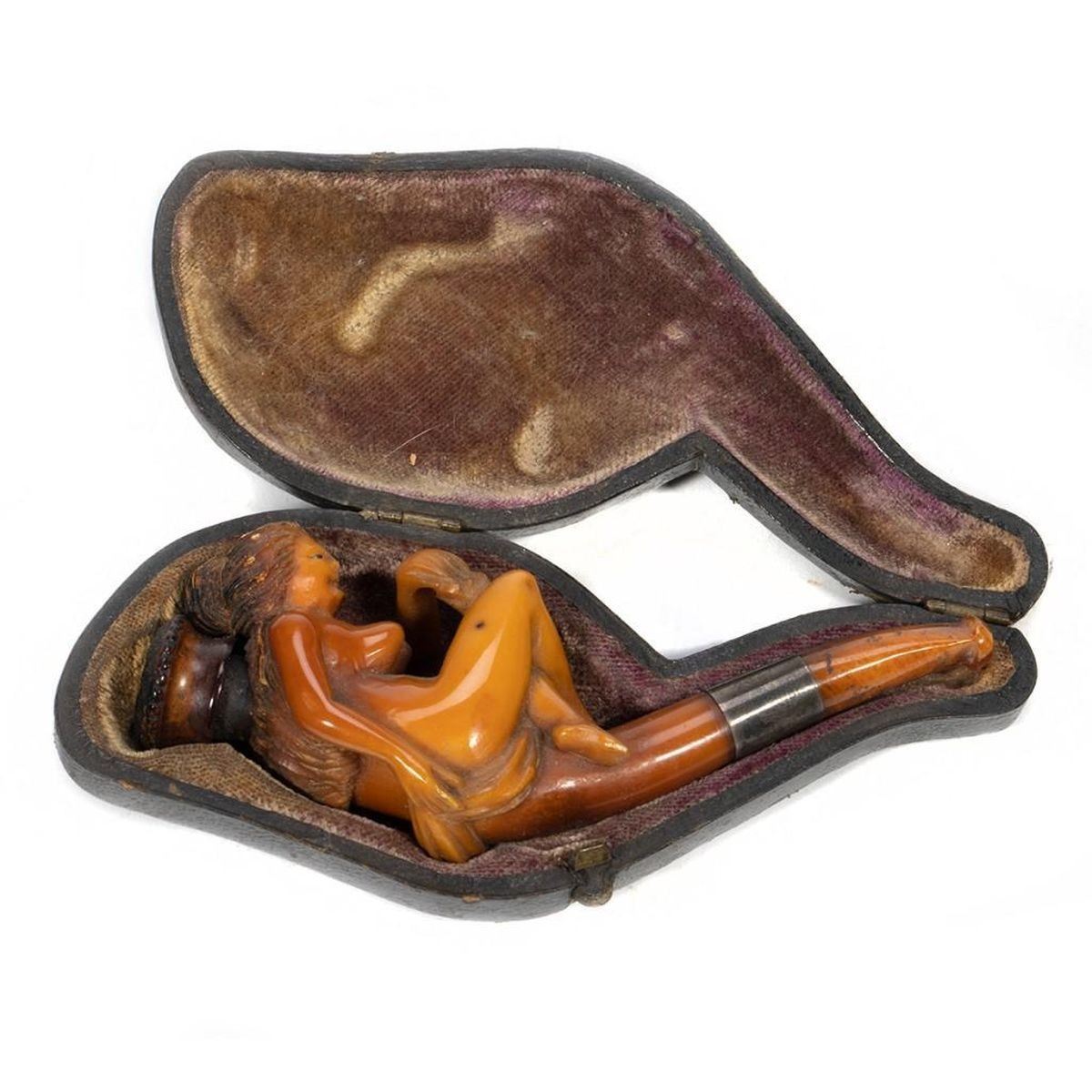 In a fitted leather case. Pipe: 3 1/2in l.