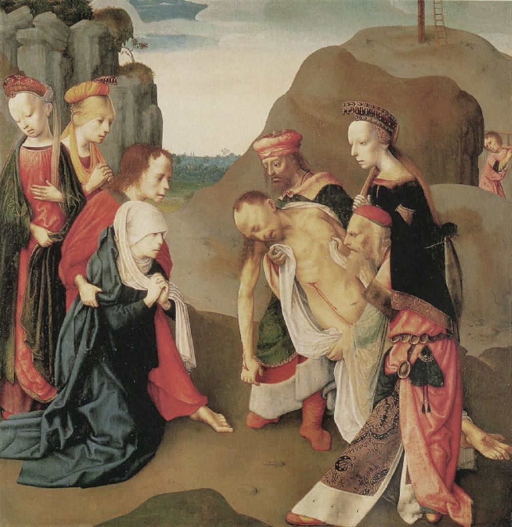 Artist: Meester - Title: Deposition of Christ - Medium: Fine Art Giclee on Canvas - Image Size: Approximately 20 inches x 19.5 inches - Unframed on Unstretched Canvas - Biography: