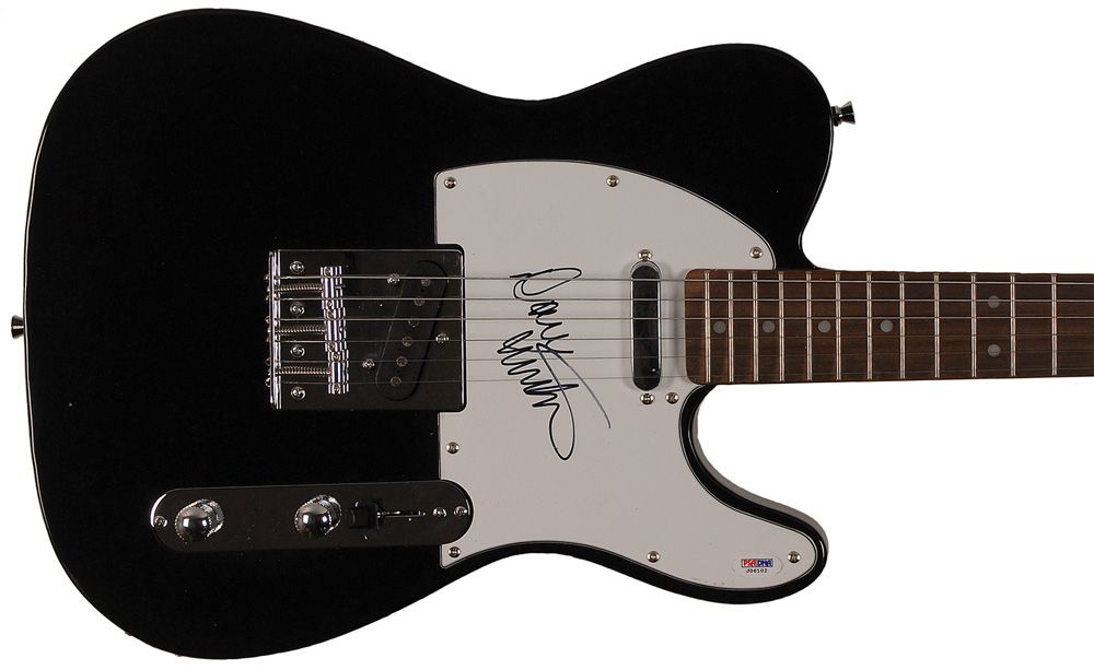 Black-bodied Stedman Pro ‘telecaster-style’ electric guitar, nicely signed on the white pickguard in black felt tip. In fine condition, with a PSA/DNA authentication label affixed to pickguard. Accompanied by a certificate of authenticity from PSA/DNA. Oversized.