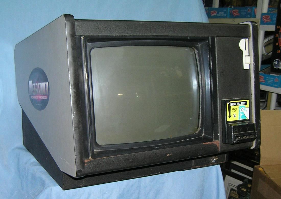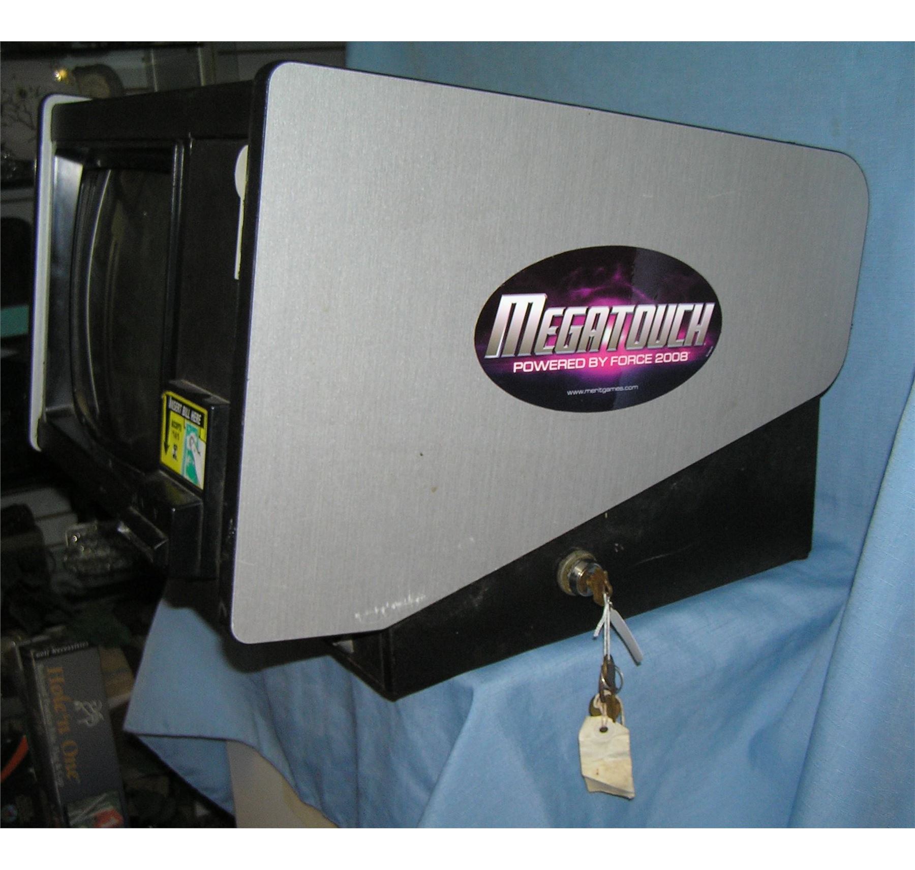 Megatouch coinop electronic video game viewer powered by Force 2008 accepts one and five dollar bills and coins table top arcade style coinop video gaming machine system with keys est. value $400.00-$500.00