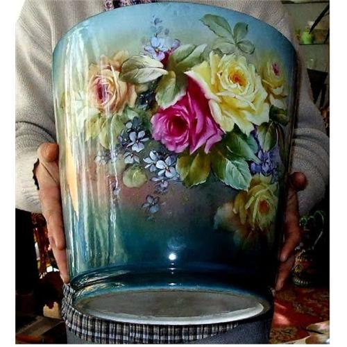 Large Art Nouveau porcelain planter on Stand , made by Franz Anton Mehlem (Royal Bonn) Germany about 1880 to 1920 , stamped and hand marked, measures a total H of 54 inches.