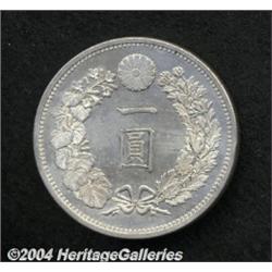 <B>Meiji 13 (1880) 1 Yen,</B></I> JNDA-1.10, KM-YA25.2, prooflike Unc. with minor hairlines. Rare in this condition. <BR><BR><B>Important notice:</B> Heritage usually auctions material at the rate of 200-250 lots per hour. On some occasions eBay Live bid software or the Internet may not be able to keep up with the pace of the auction. We recommend placing a realistic absentee bid now as insurance to avoid disappointment. Occasionally the auctioneer may eliminate or reject an eBay Live bid, and the auctioneer may also reopen a lot after the close of the eBay live bidding (usually because we missed an audience bid), and may reject your bid even if it shows you as the winning bidder. By bidding via eBay Live, you agree that Heritage may award the lot to another bidder at its sole discretion under the circumstances described above or any other reasonable circumstances. Since eBay bids are not shown to us until we open the lot on the floor, we treat those bids just like floor bids. In most cases the floor responds before the eBay bid is presented to us, due to Internet lag time, so for consistency we have made it a policy that floor bids are always considered first over tie eBay live bids. Also please note that all Heritage lots purchased through eBay Live carry a 20% Buyer's Premium. Please make sure you read the Terms and Conditions before you bid.