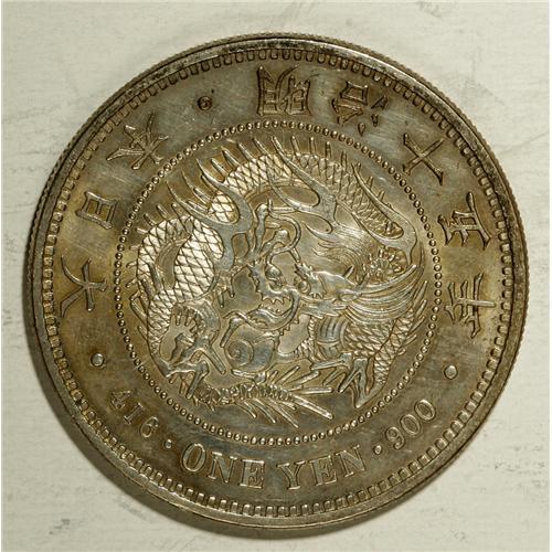 <B>Meiji 15 (1882) 1 Yen,</B></I> KM-YA25.2, Choice AU. Lightly toned with a sharp strike, nice luster, and a few light abrasions.<BR><BR><b>Shipping:</b> Coin/Currency (<a target="_blank" href="http://www.heritageauctions.com/common/shipping.php">view shipping information</a>)
