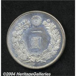 <B>Meiji 17 (1884) 1 Yen,</B></I> JNDA-1.10, KM-YA25.2, BU with a prooflike reverse and minor reverse contact marks. Very scarce. <BR><BR><B>Important notice:</B> Heritage usually auctions material at the rate of 200-250 lots per hour. On some occasions eBay Live bid software or the Internet may not be able to keep up with the pace of the auction. We recommend placing a realistic absentee bid now as insurance to avoid disappointment. Occasionally the auctioneer may eliminate or reject an eBay Live bid, and the auctioneer may also reopen a lot after the close of the eBay live bidding (usually because we missed an audience bid), and may reject your bid even if it shows you as the winning bidder. By bidding via eBay Live, you agree that Heritage may award the lot to another bidder at its sole discretion under the circumstances described above or any other reasonable circumstances. Since eBay bids are not shown to us until we open the lot on the floor, we treat those bids just like floor bids. In most cases the floor responds before the eBay bid is presented to us, due to Internet lag time, so for consistency we have made it a policy that floor bids are always considered first over tie eBay live bids. Also please note that all Heritage lots purchased through eBay Live carry a 20% Buyer's Premium. Please make sure you read the Terms and Conditions before you bid.