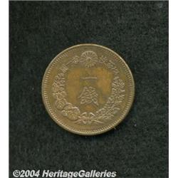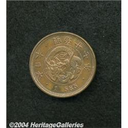 <B>Meiji 17 (1884) One Sen,</B></I> KM17, red and brown Nearly UNC. <BR><BR><B>Important notice:</B> Heritage usually auctions material at the rate of 200-250 lots per hour. On some occasions eBay Live bid software or the Internet may not be able to keep up with the pace of the auction. We recommend placing a realistic absentee bid now as insurance to avoid disappointment. Occasionally the auctioneer may eliminate or reject an eBay Live bid, and the auctioneer may also reopen a lot after the close of the eBay live bidding (usually because we missed an audience bid), and may reject your bid even if it shows you as the winning bidder. By bidding via eBay Live, you agree that Heritage may award the lot to another bidder at its sole discretion under the circumstances described above or any other reasonable circumstances. Since eBay bids are not shown to us until we open the lot on the floor, we treat those bids just like floor bids. In most cases the floor responds before the eBay bid is presented to us, due to Internet lag time, so for consistency we have made it a policy that floor bids are always considered first over tie eBay live bids. Also please note that all Heritage lots purchased through eBay Live carry a 20% Buyer's Premium. Please make sure you read the Terms and Conditions before you bid.