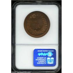 <TABLE cellSpacing=0 cellPadding=0 width="100%" bgColor=#000000 border=0><TBODY> <TR><TD width="100%"><TABLE cellSpacing=1 cellPadding=3 width="100%" border=0><TBODY><TR><TD width="100%" bgColor=#79735c><FONT face=arial color=#ffffff size=3><B>Description</B> </FONT></TD></TR><TR><TD width="100%" bgColor=#ffffff><FONT face=arial size=2><B>Meiji 2 Sen 1880,</B></I> KM18.2, MS64 RD NGC, full mint red and rare as such! </FONT></TD></TR></TBODY></TABLE></TD></TR></TBODY></TABLE><BR><A name=PricesRealized></A><TABLE cellSpacing=0 cellPadding=0 width="100%" bgColor=#000000 border=0><TBODY><TR><TD width="100%"><TABLE cellSpacing=1 cellPadding=3 width="100%" border=0><TBODY><TR><TD width="100%" bgColor=#79735c><A name=PR><FONT face=arial color=#ffffff size=3><B>Previous Prices from Heritage Auctions</B> </FONT></A></TD></TR><TR><TD bgColor=#f6f6ed>No Prior Data Recorded </TD></TR><TR><TD bgColor=#ffffff><FONT face=arial size=1 ?>PLEASE NOTE: All prices realized reflect the final hammer price PLUS the buyer's premium in auctions that charge a buyer's premium. Each item has a notation at the top of the listing indicating whether that lot included a buyer's premium. Example: A item that sells with a final hammer price of $100 and a 20% buyer's premium will display with a price realized of $120. All information listed is intended to be as accurate as possible, but errors are possible. Please use this guide carefully and inform us of any inaccuracies. </FONT></TD></TR></TBODY></TABLE></TD></TR></TBODY></TABLE><BR><TABLE cellSpacing=0 cellPadding=0 width="100%" bgColor=#000000 border=0><TBODY><TR><TD width="100%"><TABLE cellSpacing=1 cellPadding=3 width="100%" border=0><TBODY><TR><TD width="100%" bgColor=#79735c colSpan=6><FONT face=arial color=#ffffff size=3><B>Price Guide*</B> </FONT></TD></TR><TR bgColor=#f6f6ed><TD align=middle><B>Grade</B> </TD><TD align=middle><B>Coin World<BR>(Trends)</B> </TD><TD align=middle><B>Numismedia<BR>Retail</B> </TD><TD align=middle><B>Numismedia<BR>Wholesale</B> </TD><TD align=middle><B>Coin<BR>Universe</B> </TD><TD align=middle><B>Heritage<BR>Value Index</B> </TD></TR><TR bgColor=#ffffff><TD colSpan=6><FONT size=1>*All information listed is intended to be as accurate as possible, but errors are possible. No item may be returned or refused based on this information which is provided as a service to our customers. You should contact each pricing source directly to determine the accuracy of this information. </FONT></TD></TR></TBODY></TABLE></TD></TR></TBODY></TABLE><BR><TABLE cellSpacing=0 cellPadding=0 width="100%" bgColor=#000000 border=0><TBODY><TR><TD width="100%"><TABLE cellSpacing=1 cellPadding=3 width="100%" border=0><TBODY><TR><TD width="100%" bgColor=#79735c><FONT face=arial color=#ffffff size=3><B>Population Guide</B> </FONT></TD></TR><TR bgColor=#ffffff> Important notice: Heritage usually auctions material at the rate of 200-250 lots per hour. On some occasions eBay Live bid software or the Internet may not be able to keep up with the pace of the auction. We recommend placing a realistic absentee bid now as insurance to avoid disappointment. Occasionally the auctioneer may eliminate or reject an eBay Live bid, and the auctioneer may also reopen a lot after the close of the eBay live bidding (usually because we missed an audience bid), and may reject your bid even if it shows you as the winning bidder. By bidding via eBay Live, you agree that Heritage may award the lot to another bidder at its sole discretion under the circumstances described above or any other reasonable circumstances. Also please note that all Heritage lots purchased through eBay Live carry a 20% Buyer's Premium. Please make sure you read the Terms and Conditions before you bid.</TD></TR></TBODY></TABLE></TD></TR></TBODY></TABLE>