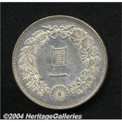 <B>Meiji 20 (1887) 1 Yen, Type 2,</B></I> JNDA-1.10A, KM-YA25.3, BU with noticeable contact marks. <BR><BR><B>Important notice:</B> Heritage usually auctions material at the rate of 200-250 lots per hour. On some occasions eBay Live bid software or the Internet may not be able to keep up with the pace of the auction. We recommend placing a realistic absentee bid now as insurance to avoid disappointment. Occasionally the auctioneer may eliminate or reject an eBay Live bid, and the auctioneer may also reopen a lot after the close of the eBay live bidding (usually because we missed an audience bid), and may reject your bid even if it shows you as the winning bidder. By bidding via eBay Live, you agree that Heritage may award the lot to another bidder at its sole discretion under the circumstances described above or any other reasonable circumstances. Since eBay bids are not shown to us until we open the lot on the floor, we treat those bids just like floor bids. In most cases the floor responds before the eBay bid is presented to us, due to Internet lag time, so for consistency we have made it a policy that floor bids are always considered first over tie eBay live bids. Also please note that all Heritage lots purchased through eBay Live carry a 20% Buyer's Premium. Please make sure you read the Terms and Conditions before you bid.