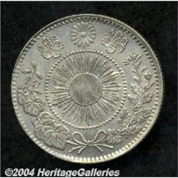 <B>Meiji 3 (1870) 20 Sen Deep Scales,</B></I> KM3 BU. <BR><BR><B>Important notice:</B> Heritage usually auctions material at the rate of 200-250 lots per hour. On some occasions eBay Live bid software or the Internet may not be able to keep up with the pace of the auction. We recommend placing a realistic absentee bid now as insurance to avoid disappointment. Occasionally the auctioneer may eliminate or reject an eBay Live bid, and the auctioneer may also reopen a lot after the close of the eBay live bidding (usually because we missed an audience bid), and may reject your bid even if it shows you as the winning bidder. By bidding via eBay Live, you agree that Heritage may award the lot to another bidder at its sole discretion under the circumstances described above or any other reasonable circumstances. Since eBay bids are not shown to us until we open the lot on the floor, we treat those bids just like floor bids. In most cases the floor responds before the eBay bid is presented to us, due to Internet lag time, so for consistency we have made it a policy that floor bids are always considered first over tie eBay live bids. Also please note that all Heritage lots purchased through eBay Live carry a 20% Buyer's Premium. Please make sure you read the Terms and Conditions before you bid.