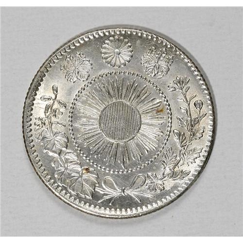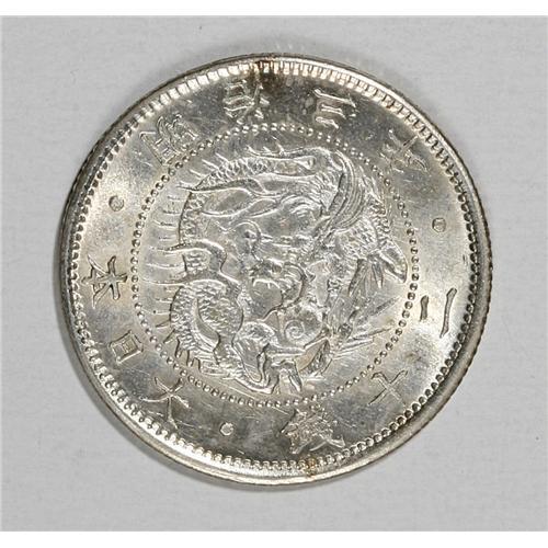 <B>Meiji 3 (1870) 20 Sen, shallow scales,</B></I> KM-Y3, lustrous UNC. A bit softly struck in the central part of the obverse with minor handling marks.<BR><I>From the Shinholser Collection</B></I><BR><BR><b>Shipping:</b> Coin/Currency (<a target="_blank" href="http://www.heritageauctions.com/common/shipping.php">view shipping information</a>)