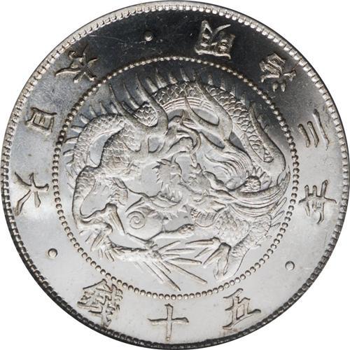 Meiji 3 (1870) 50 Sen, KM-Y4, MS65 PCGS. Brilliant whit