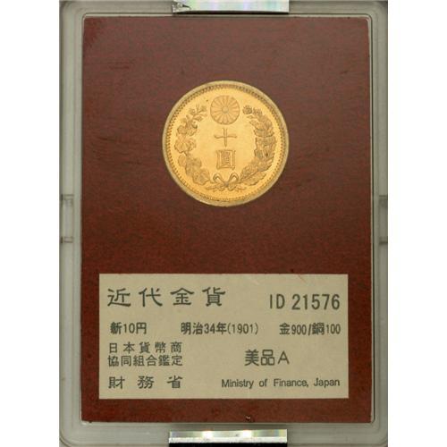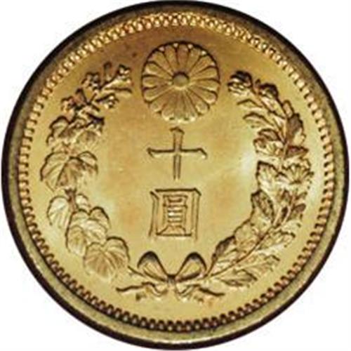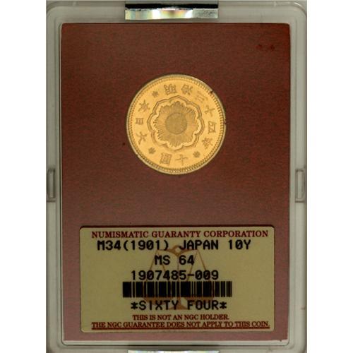 <B>Meiji 34 (1901) gold 10 Yen,</B></I> F-51, KM-Y33, MS64 NGC. Minimally abraded surfaces with nice luster and a strong strike.<BR><BR><b>Shipping:</b> Coin/Currency (<a target="_blank" href="http://www.heritageauctions.com/common/shipping.php">view shipping information</a>)