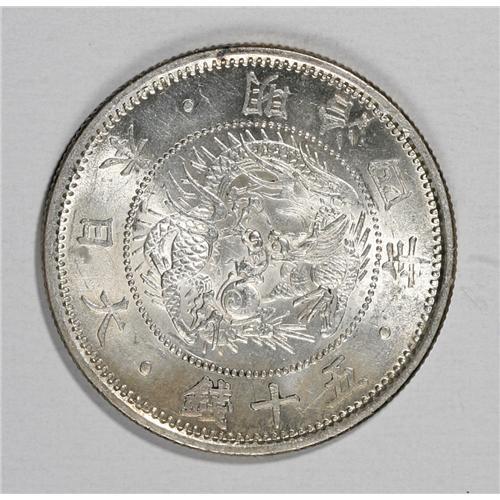 <B>Meiji 4 (1871) 50 Sen,</B></I> KM-Y4a.1, brilliant UNC with slight staining on the reverse.<BR><I>From the Shinholser Collection</B></I><BR><BR><b>Shipping:</b> Coin/Currency (<a target="_blank" href="http://www.heritageauctions.com/common/shipping.php">view shipping information</a>)