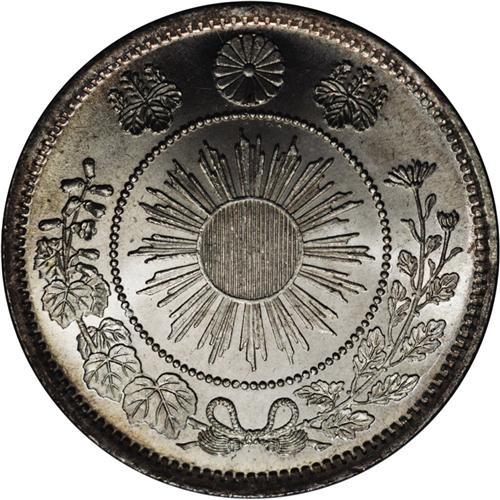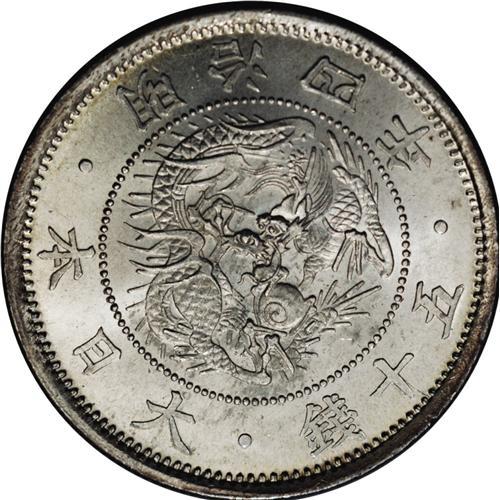 <B>Meiji 4 (1871) 50 Sen,</B></I> KM-Y4a.1, Choice UNC. Fully brilliant with a hint of golden toning.<BR><I>From the Shinholser Collection</B></I><BR><BR><b>Shipping:</b> Coin/Currency (<a target="_blank" href="http://www.heritageauctions.com/common/shipping.php">view shipping information</a>)