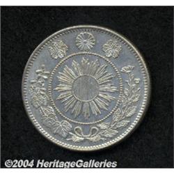 <B>Meiji 4 (1871) 50 Sen,</B></I> JNDA-1.13A, KM-Y4a.1, lustrous AU <BR><BR><B>Important notice:</B> Heritage usually auctions material at the rate of 200-250 lots per hour. On some occasions eBay Live bid software or the Internet may not be able to keep up with the pace of the auction. We recommend placing a realistic absentee bid now as insurance to avoid disappointment. Occasionally the auctioneer may eliminate or reject an eBay Live bid, and the auctioneer may also reopen a lot after the close of the eBay live bidding (usually because we missed an audience bid), and may reject your bid even if it shows you as the winning bidder. By bidding via eBay Live, you agree that Heritage may award the lot to another bidder at its sole discretion under the circumstances described above or any other reasonable circumstances. Since eBay bids are not shown to us until we open the lot on the floor, we treat those bids just like floor bids. In most cases the floor responds before the eBay bid is presented to us, due to Internet lag time, so for consistency we have made it a policy that floor bids are always considered first over tie eBay live bids. Also please note that all Heritage lots purchased through eBay Live carry a 20% Buyer's Premium. Please make sure you read the Terms and Conditions before you bid.