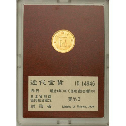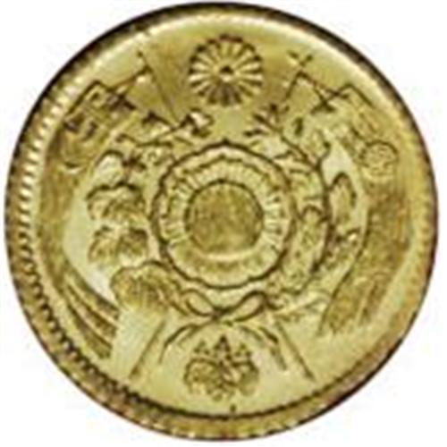 <B> Meiji 4 gold 1 Yen, High Dot,</B></I> F-49, KM-Y9, MS64 PCGS. Brilliant luster with minor obverse contact marks.<BR><BR><b>Shipping:</b> Coin/Currency (<a target="_blank" href="http://www.heritageauctions.com/common/shipping.php">view shipping information</a>)