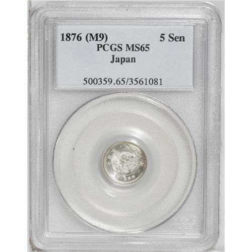 <B>Meiji 9 (1876) 5 Sen Type 1,</B></I> KM-YA22, MS65 PCGS. Fully struck with brilliant white luster.