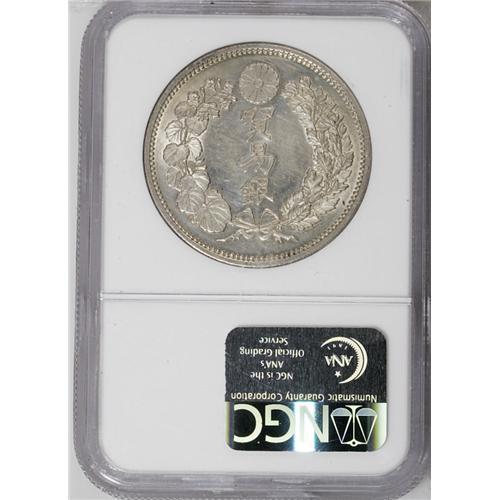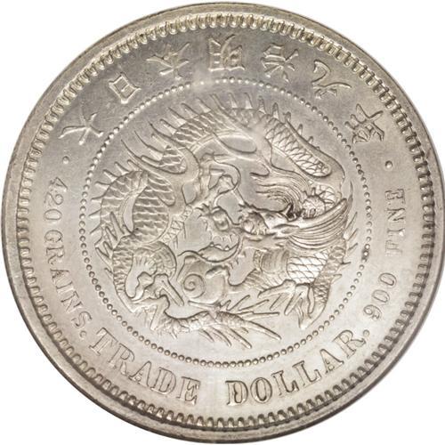 <B>Meiji 9 (1876) Trade Dollar,</B></I> KM-Y14, MS61 NGC. Sharply struck and lustrous with light reverse abrasions and a touch of golden toning. Mint State examples of this type are quite scarce. <BR><BR><B>Important notice: