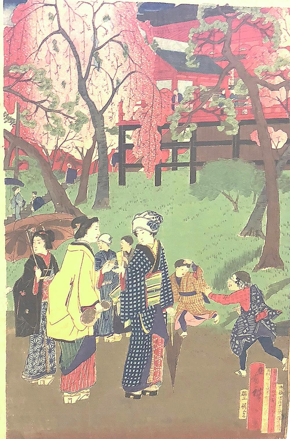 Meiji Era Artist - "People in Park" Japanese Woodblock Print, some aging, otherwise fine condition, 14.5 x 9.5