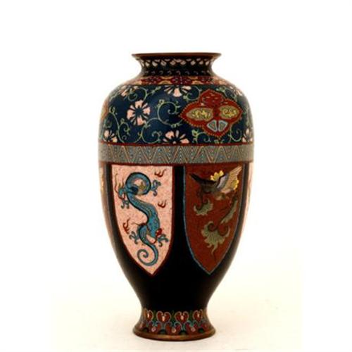 Meiji (1868-1912) Japanese 6 Panels Dragon & Phoenix Cloisonne Vase
