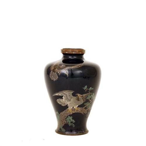 <table width="100%" border="0" cellspacing="0" cellpadding="4"><tr><td><em> </em></td></tr><tr> <td width="100%"> Meiji (1868-1912) Japanese Cobalt Blue Cloisonne Vase with 2 Eagles Fighting
