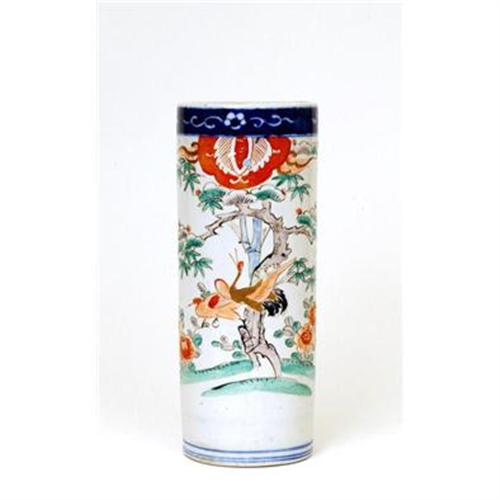 <tr><td>Title:Meiji Japanese Imari Vase w Crane Flower </td></tr>