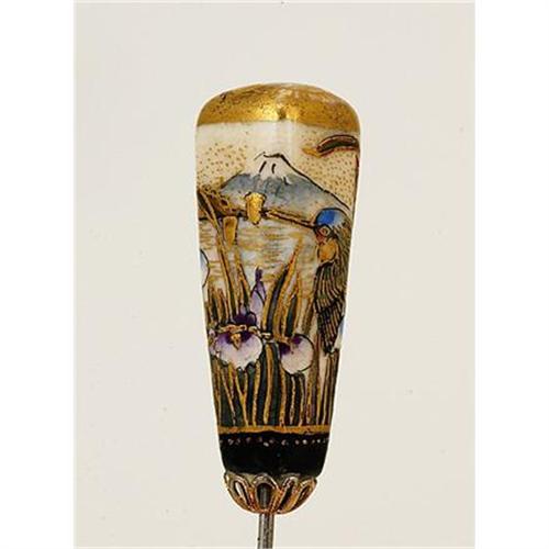<tr><td>Title:Meiji Japanese Satsuma Iris Bird Hat Hair Pin</td></tr>