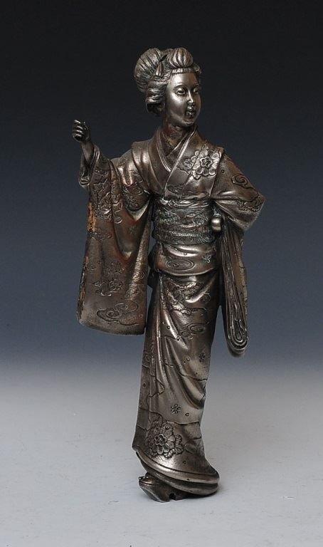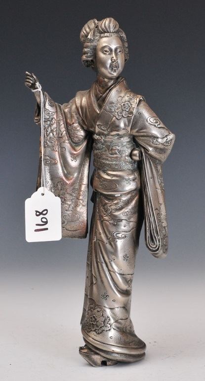 CONDITION REPORT: figure is lacking fan from right hand, minor rubs to silvering