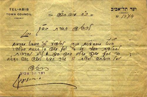Meir Dizengoff. A founder and first Mayor of Tel Aviv, the first Hebrew city in Palestine. Very early A.L.S., 1920, on Hebrew and English letterhead of Tel Aviv Town Council. Addressed to Anglo-Palestine Co. (operated as a bank), regarding financial matters. Handstamped "Tel Aviv Committee" in Hebrew above signature. At the same time, Dizengoff was leading a total dissociation from Jaffa, then with an Arab majority. Fine.