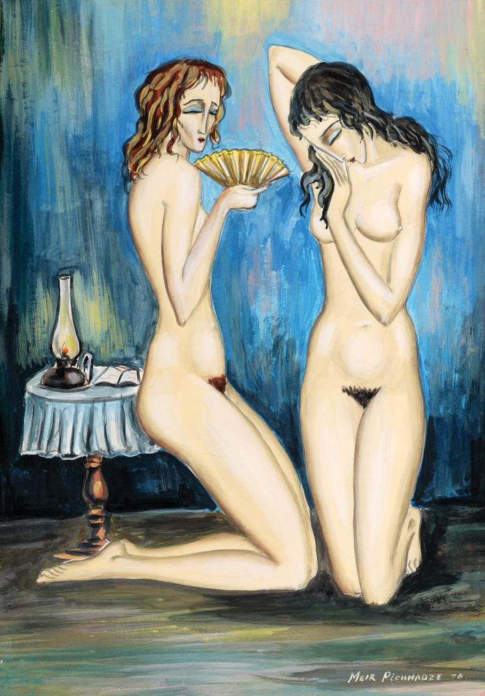 Meir Pichhadze, Israeli Art, 1955 - 2010, Nudes, 1978, Mixed media on paper laid on canvas, 49.5x36cm, Signed and dated., , , , ,