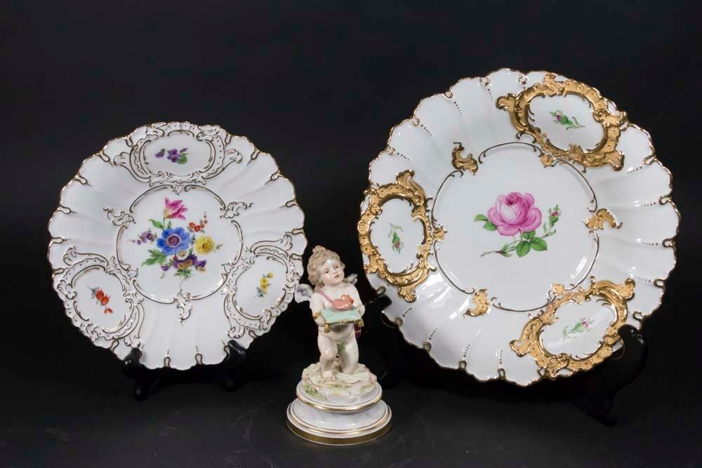 Figure approx. 6 3/4" H. Larger plate approx. 11 1/2" diameter.